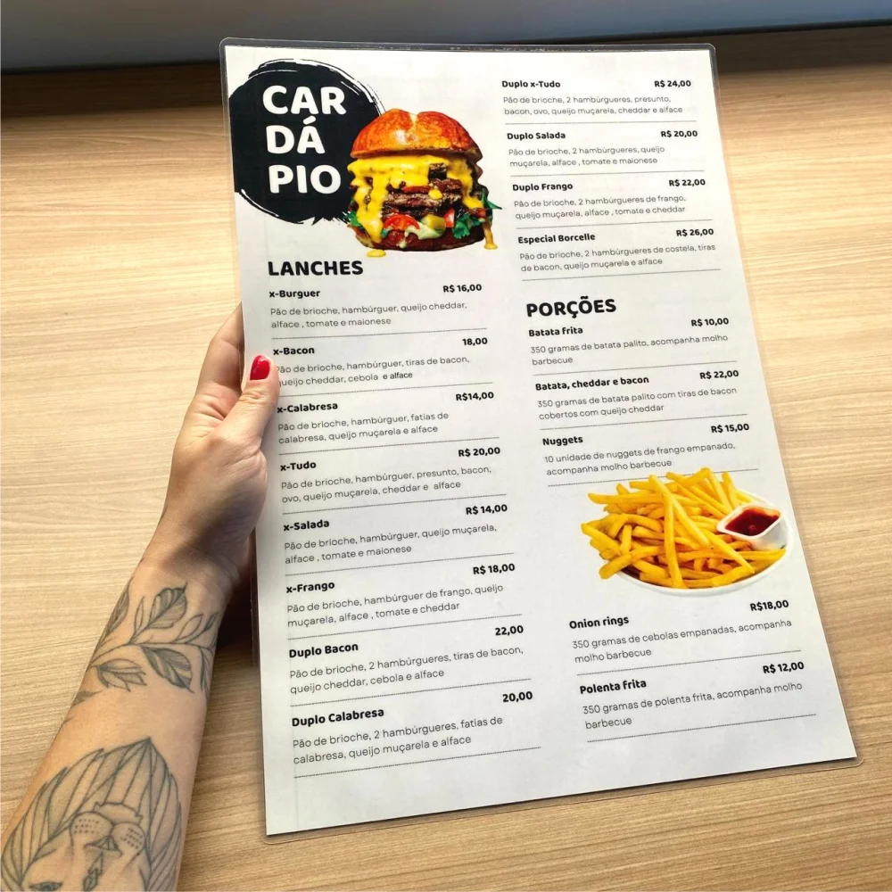 Em papel couchê 300g